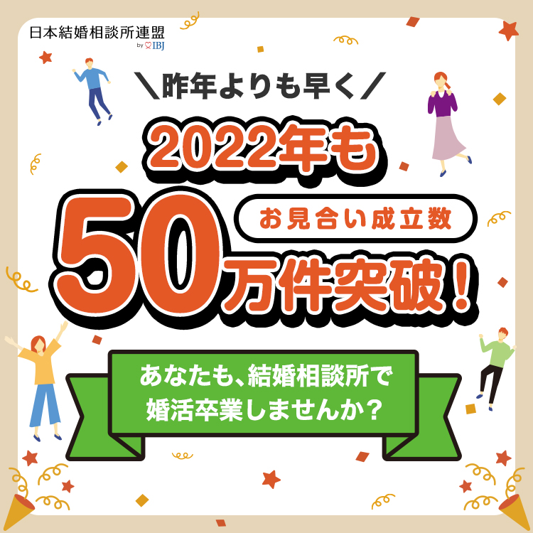 日本結婚相談所連盟では、2022年のお見合い成立数が50万件を突破したことを記念して、