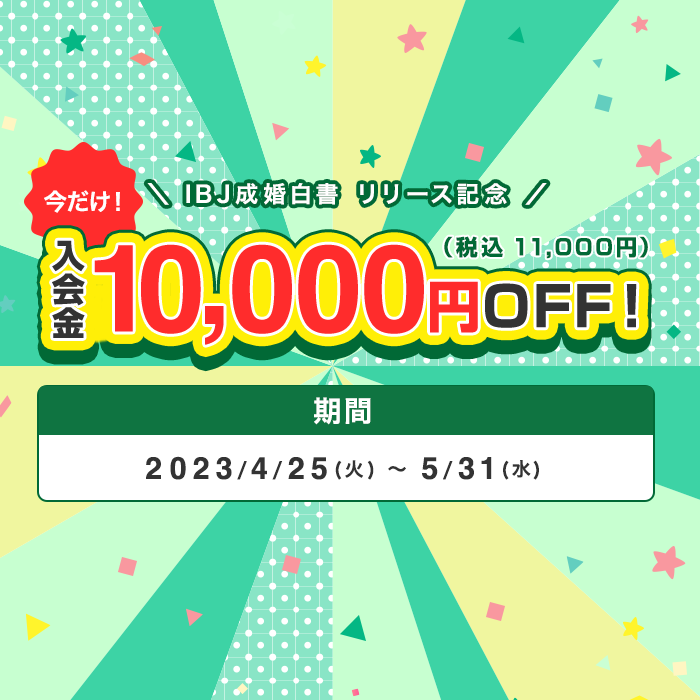 IBJ成婚白書リリース記念にあわせて入会金10,000円OFFキャンペーンを行います