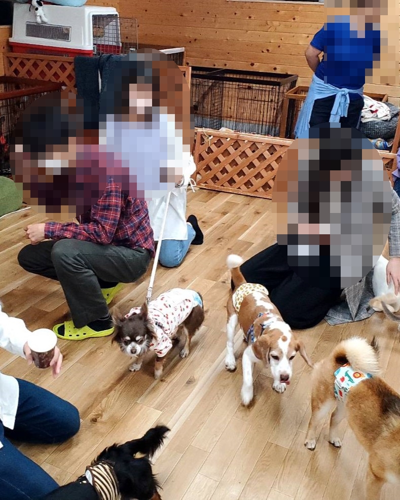 その後、ワンちゃん&ネコちゃんとの触れ合いタイム