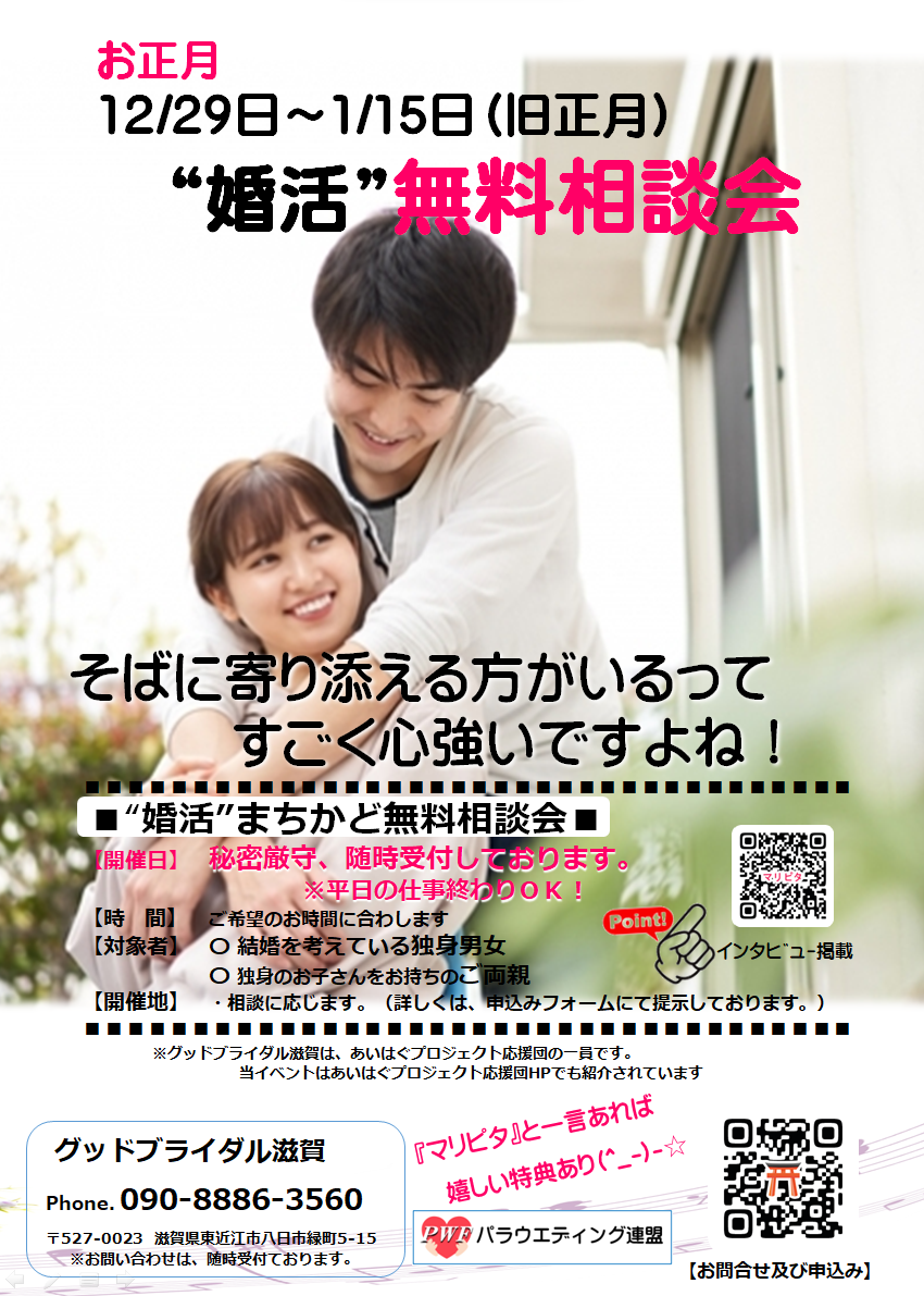 【お正月】 “婚活”まちかど無料相談会 滋賀県で婚活ならグッドブライダル滋賀