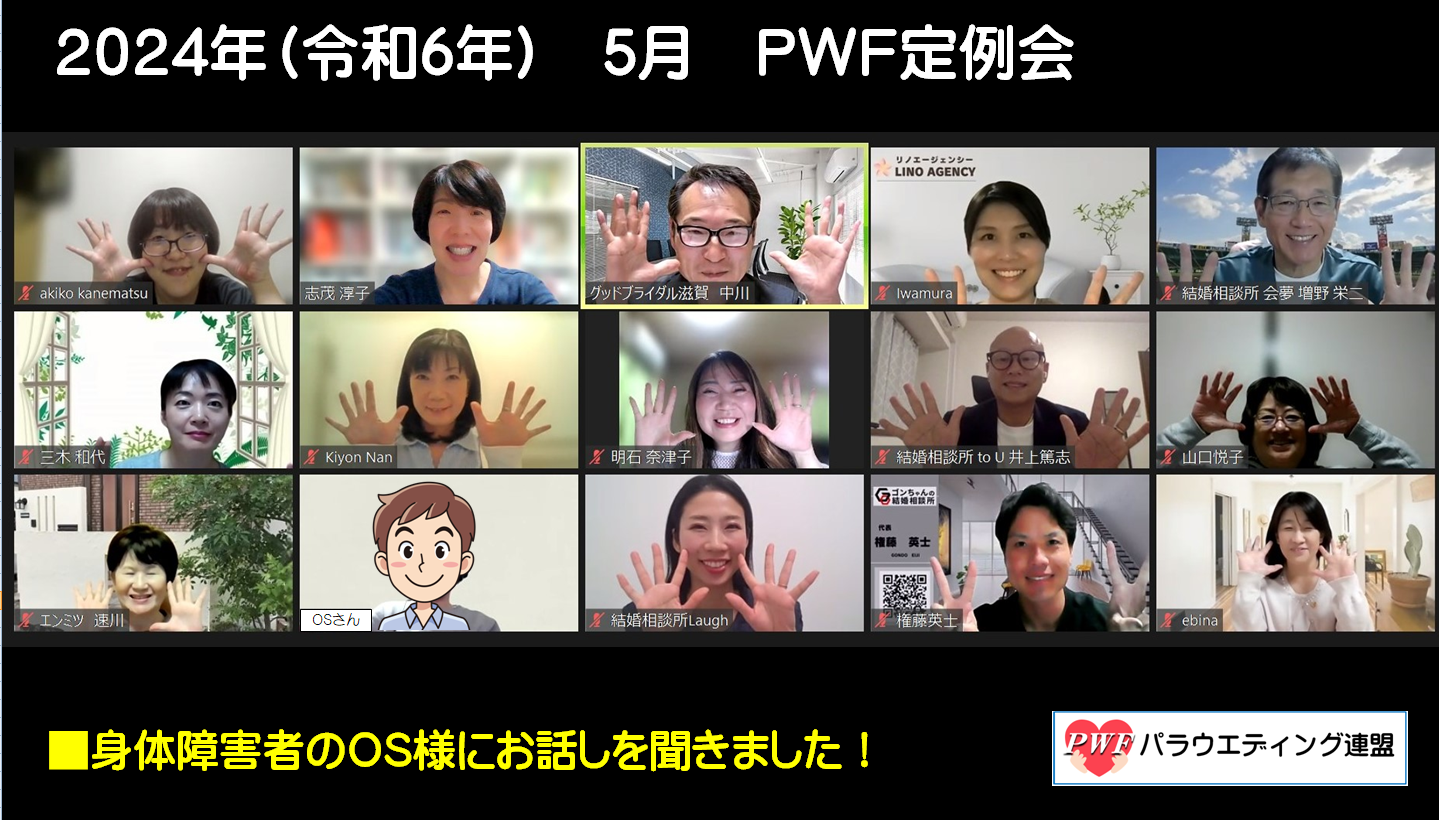 今月、障害者さんの婚活支援をしている『パラウエディング連盟』の定例会を開催しました。