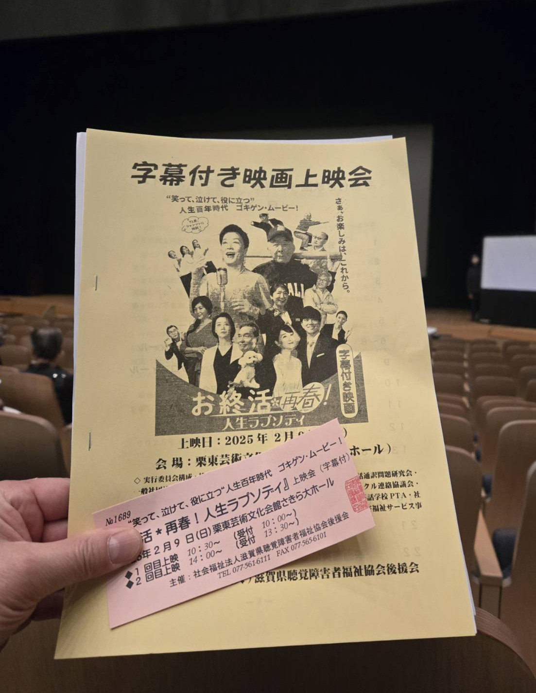 この映画の主催者さんは、『(社福)滋賀県聴覚障害者福祉協会後援会』さんです。聴覚障害の方と健聴者さんが共に鑑賞し、大きな画面で映画を楽しむこと』を目的とされています。