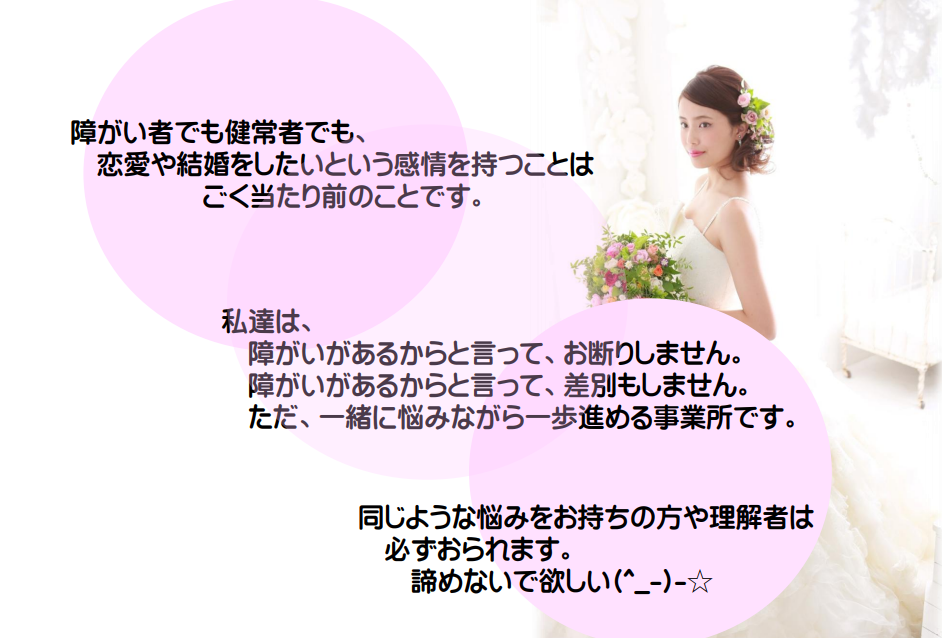 疾患や障がいをお持ち方々の『生涯より添えるパートナーが欲しい!』そんな言葉をかたちにする場所です。