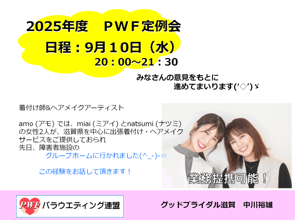 障がい者さんの婚活サポート/パラウエディング連盟 9月定例会開催 in滋賀の婚活はグッドブライダルで!