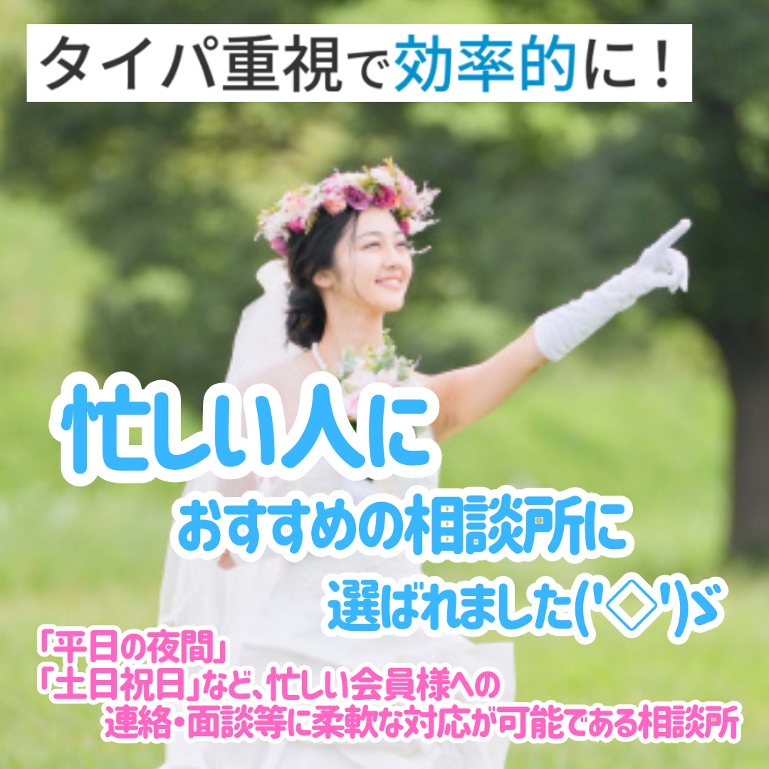 多忙な会員様へ、柔軟かつ効率的なサポートが提供できる結婚相談所として選出!これは、数ある相談所の中なんで、めっちゃ嬉しいです。