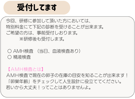 申込みにて、『検査希望/AMH検査』にチエックお願い致します。