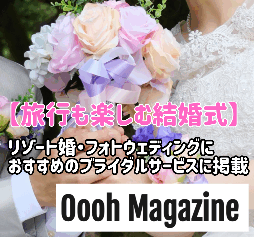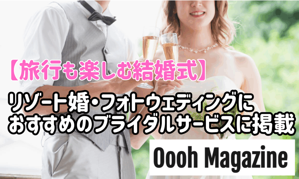 Oooh株式会社の運営するメディア「Oooh Magazine」内の記事「【旅行も楽しむ結婚式】リゾート婚・フォトウェディングにおすすめのブライダルサービスまとめ」に当社が掲載されました。